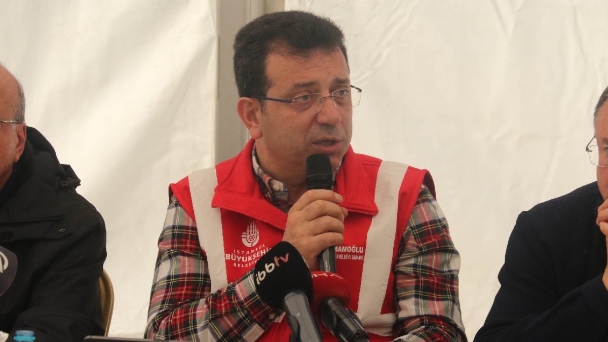 “18 milyon ton molozun geçici olarak toparlanması için, 2,5 metre yüksekliğinde 4 kilometrekare genişliğinde bir alana ihtiyacı vardır” diyen İmamoğlu, şöyle konuştu: