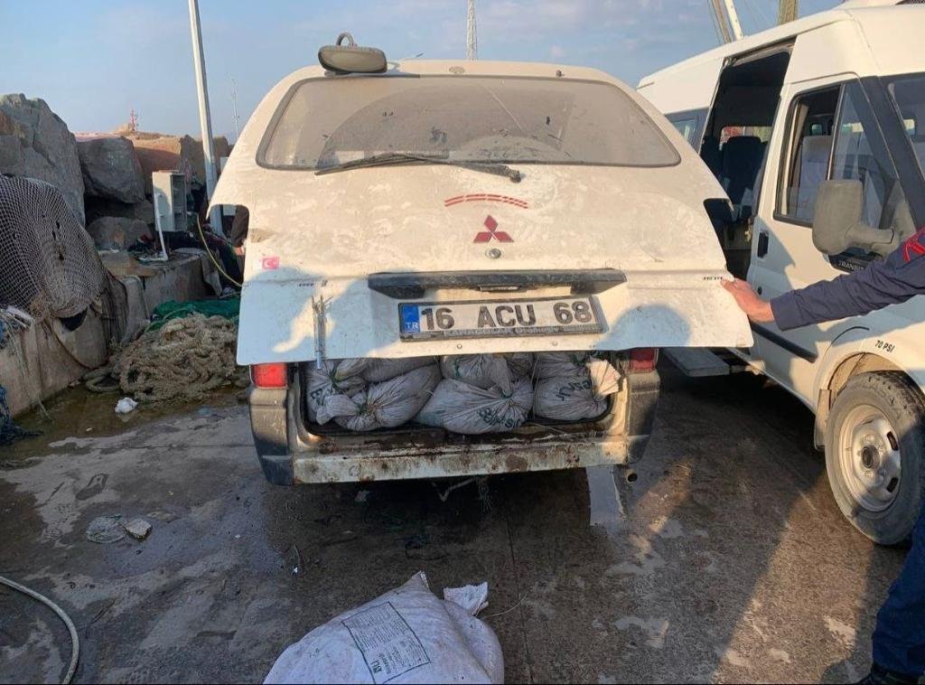 Araçta yapılan aramada kaçak olarak avlandığı belirlenen 1 ton deniz patlıcanı ele geçirildi. O.I'ya 14 bin lira ceza uygulandı.