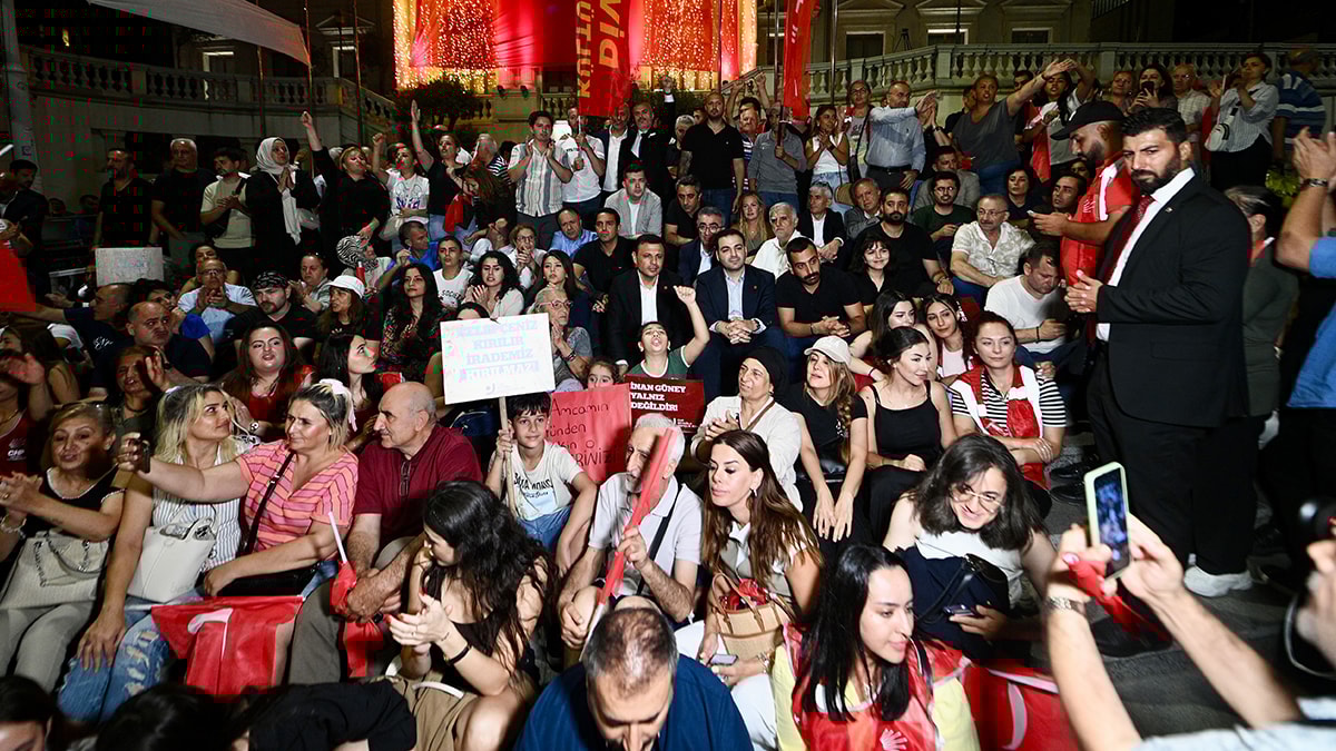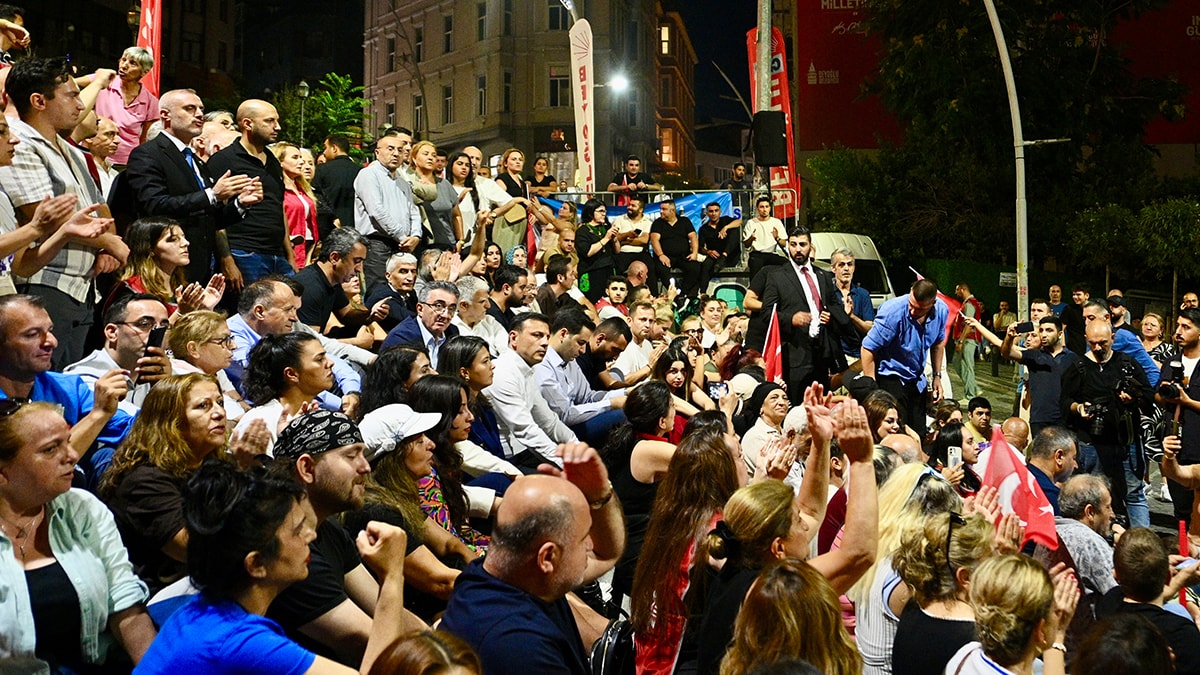 - Halkın iradesi şafak operasyonları tanımaz, Beyoğlu halkı teslim olmaz, İstanbul teslim olmaz, Adana teslim olmaz, Antalya teslim olmaz. Aydın’da bir kişi boyun bükebilir, eğilebilir, ama efeler teslim olmaz, Aydın halkı teslim olmaz. Aydınlık günler yakındır. Mutlu ve güzel şafaklara uyanacağımız günler yakındır. Direnenler kazanacak, hak kazanacak, halk kazanacak. Adalet kazanacak, demokrasi kazanacak. Yarın 20.30’da yine buradayız, direnmeye devam edeceğiz. Direne direne kazanacağız.