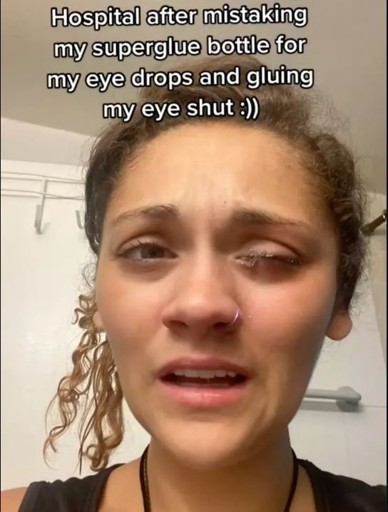 Sosyal medyada beş milyon izlenme ve beş yüz binden fazla yorum alan bir video yayınlayan Lyd isimli bir kadın, yanlışlıkla göz damlası yerine süper yapıştırıcı kullandıktan sonra gözünü kaybetme riskiyle acil servise kaldırıldığını paylaştı.