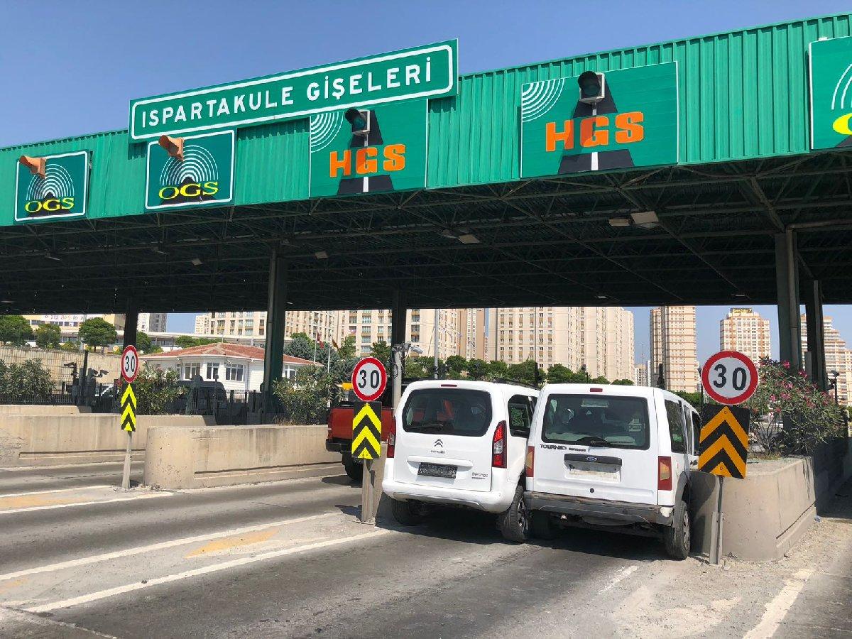 Fotoğraf: DHAOlay saat 14.30 sıralarında Bahçeşehir Ispartakule Gişelerde meydana geldi. Ankara istikametine seyir halinde olan iki otomobilin sürücüsü aynı gişeden geçmek isteyince gişelerde sıkıştı. Kaza nedeniyle 2 otomobilde de büyük çapta maddi hasar meydana gelirken sürücüler yara almadan kurtuldu.
