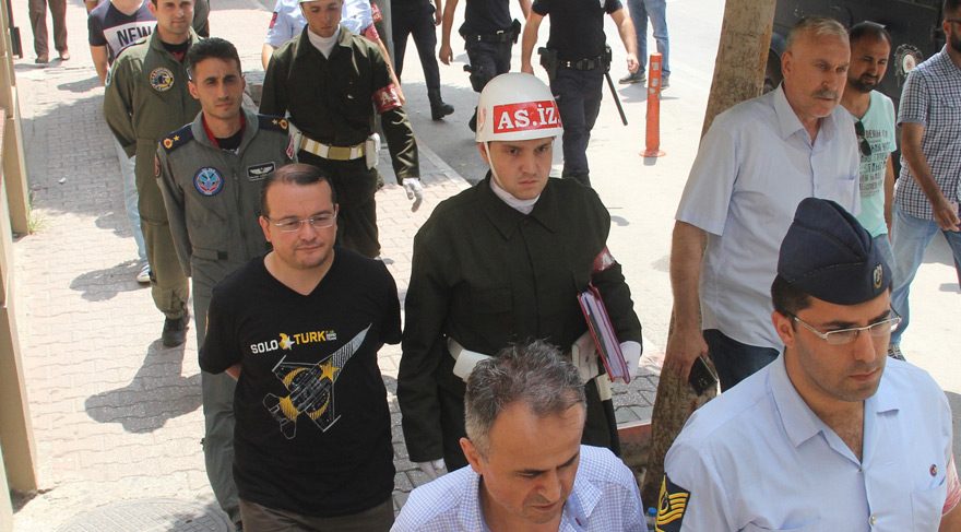 Darbe girişiminin düzenleyici ve 1'inci derecede yardımcı oldukları iddiası ile gözaltına alınan, 11 rütbeli asker ile 1 emniyet müdürü emniyetteki sorgularının ardından adliyeye sevk edildi. Nöbetçi mahkeme, darbe girişimcilerinin emri ile Ankara ve İstanbul'daki F-16'ların uzun süre havada kalabilmesi için tanker uçakların havalandığı İncirlik 10'uncu Tanker Üs Komutanı Tuğgeneral Bekir Ercan Van, Kurmay Albay Halil Çelik, Hakim Teğmen Gani Çetintaş, Hakim Teğmen Faruk Savaş, Hakim Teğmen Mustafa Haşim Boynueğri, Üsteğmen Hasan Şahna, Binbaşı Osman Tunahan Berk, Hava Pilot Kurmay Binbaşı Devrim Egriağaç, Hava Pilot Üsteğmen Fatih Akbulut, Hava Uçak Bakım Kıdemli Üstçavuş Bülent Toygar, Hava Pilot Üsteğmen Hızır Özyuva ve 4'üncü Sınıf Emniyet Müdürü Haluk Pamukçu'nun tutuklanmasına karar verdi. Tutuklanan şüpheliler, askeri inzibat tarafından Adana Merkez Komutanlığı'na götürüldü. Askerlerin bir kısmının sivil, diğerlerinin de asker üniformalarındaki rütbelerin sökülmüş olduğu görüldü. DHA