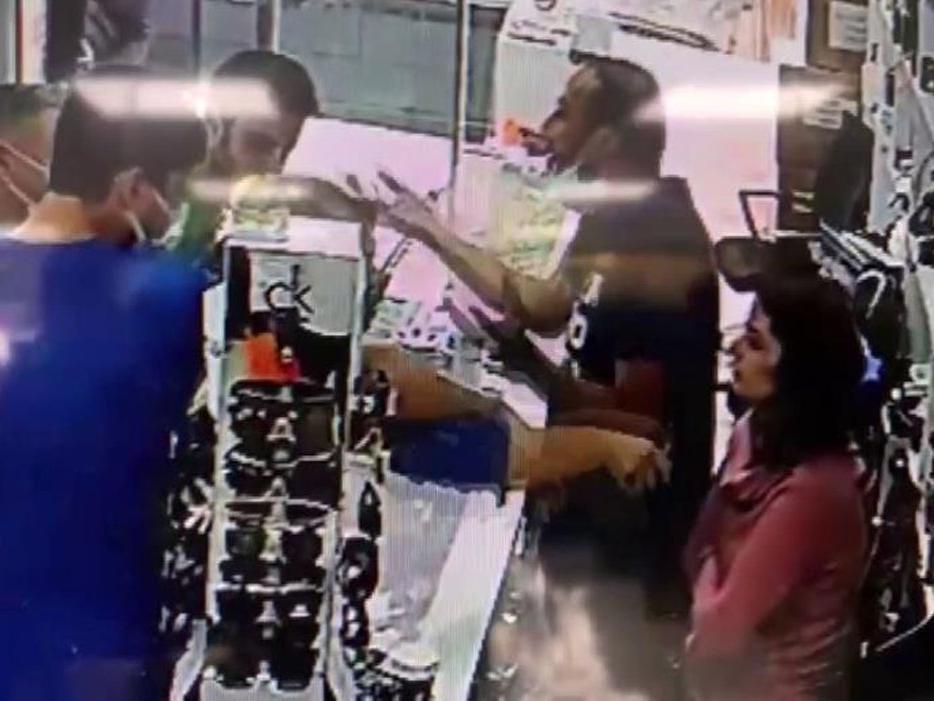 Bu cevap üzerine sinirlenen müşteri tezgahta bulunan kolonya şişesini Elif Korkmaz’a fırlatmak istedi. Durumu fark eden tezgahtarın ağabeyi Caner Korkmaz kadına müdahale ederek şişeyi elinden aldı.