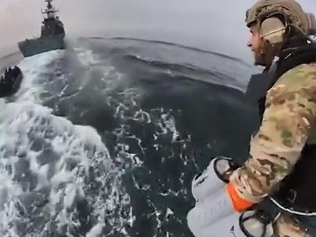İngiliz Kraliyet Donanması'nda görevli askerler, açık denizde yapılan tatbikatla birlikte Gravity Jet Suit adı verilen sırt roketiyle deneme uçuşu gerçekleştirdi.