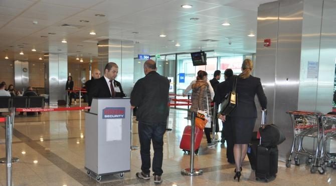 Güvenlik aramasının Gözen Güvenlik şirketi elemanları tarafından yapılan BA'nın  Londra’ya giden 90 yolcusununrı bilet ve pasaport işlemlerinin ardından uçağa binecekleri köprülerin bulunduğu salonda da el bagajı aramasında geçirildi.