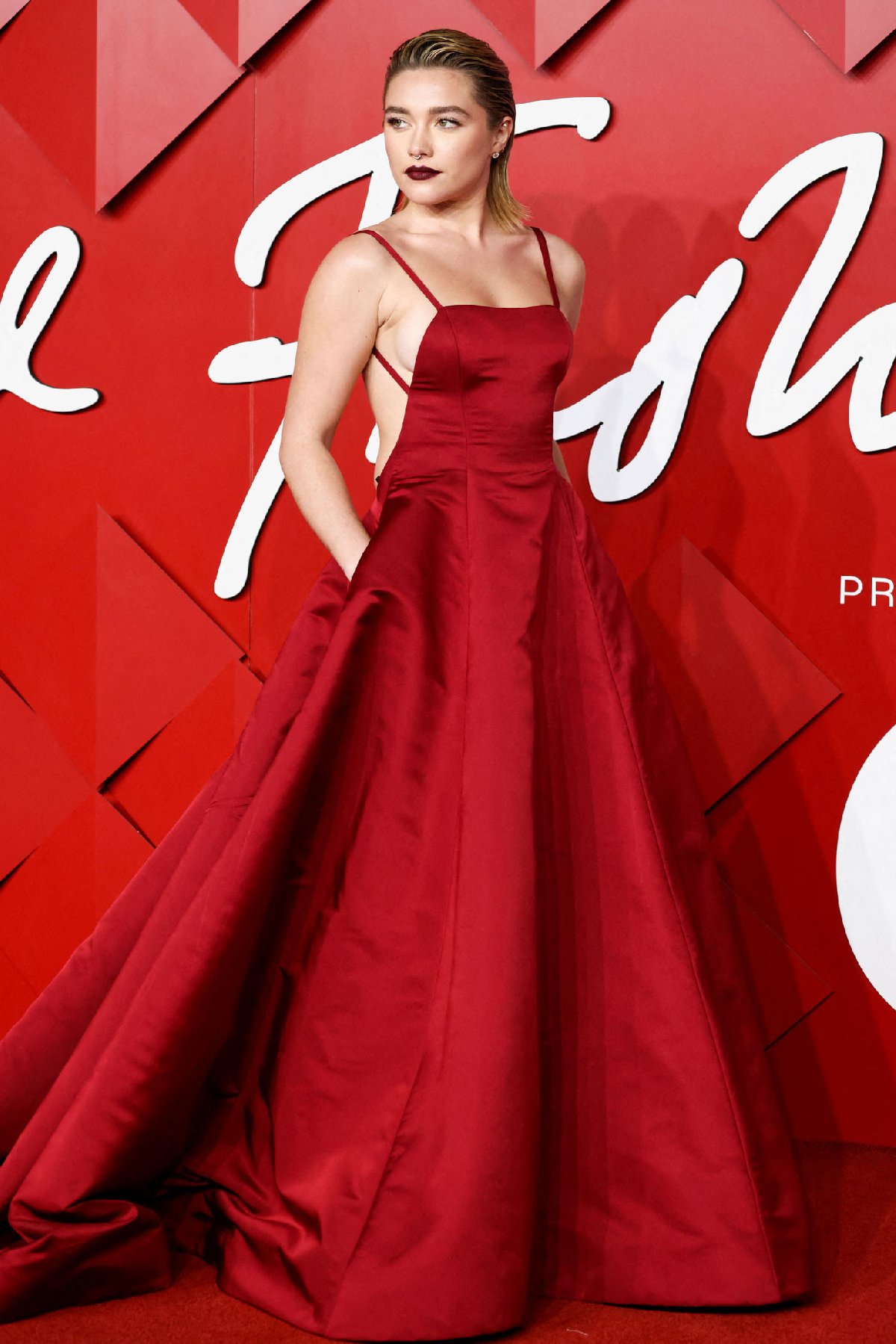 Florence Pugh, özel olarak tasarlanmış devasa bir prenses eteği ve sırt dekolteli bir elbise ile gecenin öne çıkan isimlerinden oldu. Oscar adayına, Valentino Kreatif Direktörü Pierpaolo Piccioli eşlik etti.