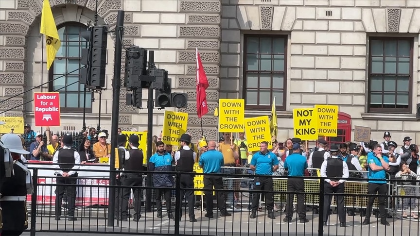 İngiltere’de monarşi karşıtı Republic grubu, parlamentonun resmi açılış töreni öncesinde Kral 3. Charles ve monarşi yönetimini protesto etti.
