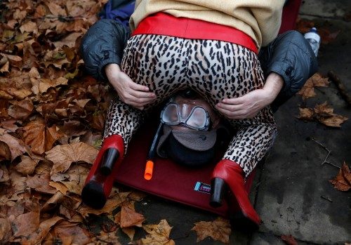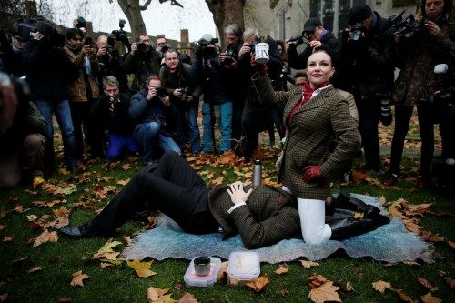 Protestocular pornografiye getirilen yasakları ilginç kostüm ve hareketlerle protesto ederken çevredekilerin şaşkın bakışları gözlerden kaçmadı.