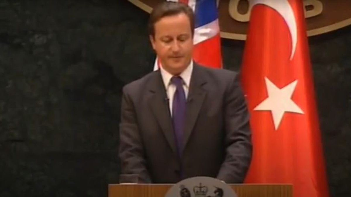 Altı yıllık görev süresi boyunca Cameron Ankara ile yakın ilişkiler kurmuştu. Dönemin başbakanı Ahmet Davutoğlu ile bir araya gelmişti.Cameron konuşmasında, "Açıkça söylemek istiyorum. İsrail'in Gazze'ye saldırıları tamamen kabul edilemez. Ve ben Başbakan Netanyahu'ya İsrail'in bu olayla ilgili soruşturmasının hızlı ve şeffaf bir şekilde açıklanmasını istiyoruz" demişti.