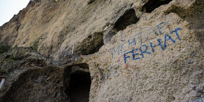 Koruma altındaki tarihi mağaralara bazı kişilerce yazılan yazılar ise ziyarete gelen vatandaşların da tepkisini çekti. (İHA)