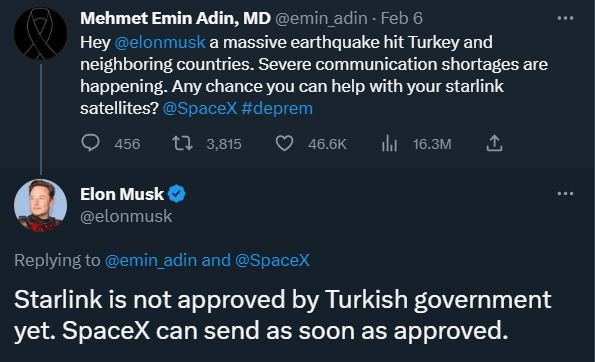 Musk, Rusya'nın saldırıları sırasında Ukrayna'ya gönderdiği SpaceX şirketinin Starlink internet hizmetini Türkiye için de teklif etti. SpaceX'in, Türk hükümeti tarafından onaylanır onaylanmaz Starlink göndermeye hazır olduğunu söyledi. Peki bu tip durumlarda Starlink neden bu kadar önemli?