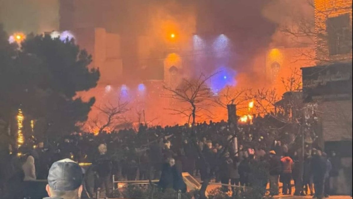 "Diktatöre Ölüm" sloganlarının yükseldiği meydanlarda bazı kamu binaları da hedef alındı. Dini lider Ayetullah Ali Hamaney televizyonda yaptığı konuşmada: "İslam Cumhuriyeti Trump’ı memnun etmeye çalışan bu yağmacıların karşısında asla geri adım atmayacaktır" dedi.