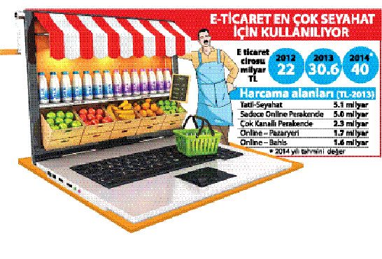 Online alışverişe olan ilginin her geçen gün arttığı Türkiye’de Bankalararası Kart Merkezi verilerine göre, Türkiye’de her 5 kişiden biri internet üzerinden alışveriş yapıyor. Türkiye 30 milyonu aşan kullanıcısıyla, dünyanın en büyük 12’nci internet pazarı konumunda.Bu büyüklük e-ticaret sitelerinin ve sektörün de cirosuna yansıyor. BKM verilerine göre 2011 yılında 22 milyar TL olan e-ticaret sektörü cirosu, 2012’de 30.6 milyar TL’ye ulaştı. 2013’ü 40 milyar TL ile kapatan sektörün özellikle hukuki altyapının tamamlanması halinde 2015 yılında 60 milyar TL’lik büyüklüğe ulaşması bekleniyor.