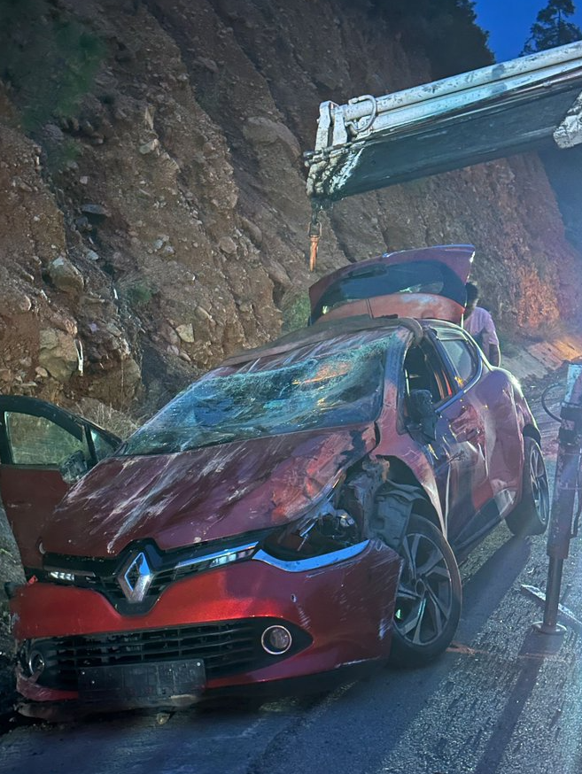 Kazanın boyutunu anlatan Aldemir, aracın takla attıktan sonra ters dönmüş halinin ve vinçle düzeltilmiş ağır hasarlı fotoğrafını da paylaşarak, kazanın ciddiyetini gözler önüne serdi.
