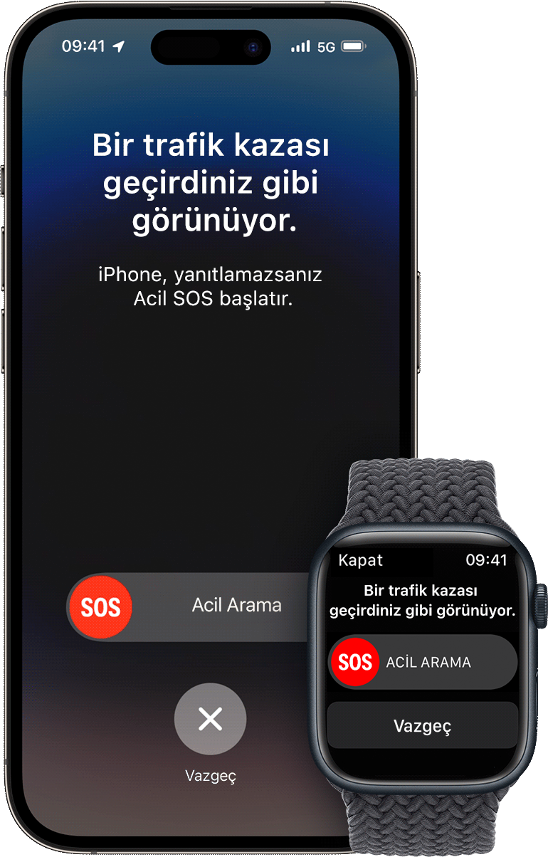Acil Durum SOS etkin olduğunda, iPhone bir kaza algıladığında sizinle iletişim kurmaya çalışır ve yanıt alamazsa, Acil Yardım çağrısı yapar.