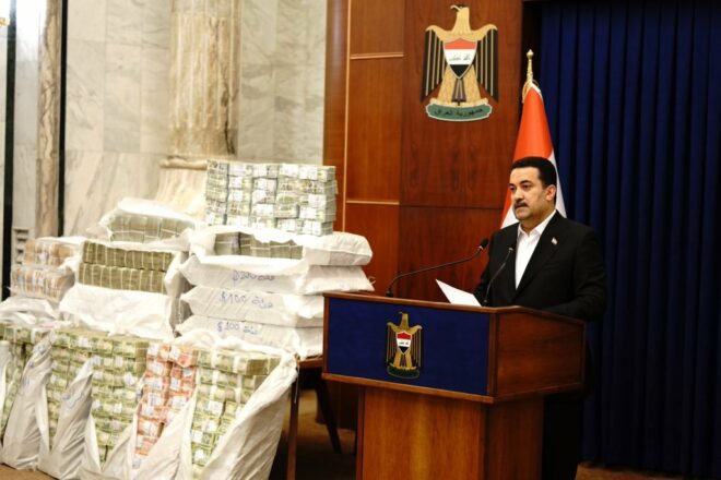 "İnceleme yürüten ilgili komisyonlar, çalınan meblağdan 182 milyar dinarın (124 milyon 600 bin doların) iade edilmesini sağladı" diyen Sudani, söz konusu paraların çalınmasına bazı devlet kurumlarında çalışan kişilerin yardımcı olduğunu söyledi.
