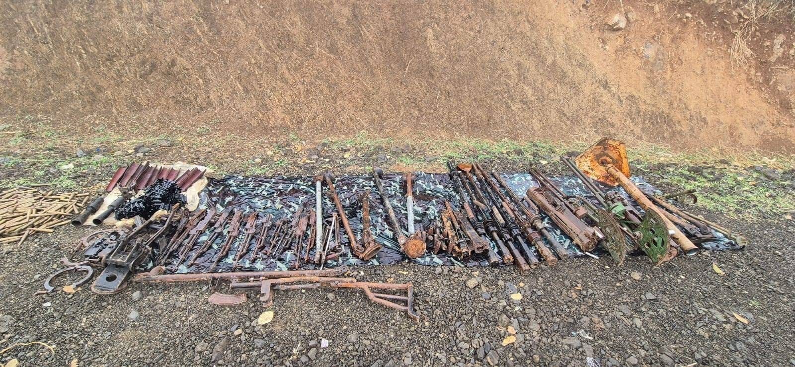 Ele geçirilen malzemeler arasında 11 adet AK-47 piyade tüfeği ve şarjörü, Doçka makineli tüfeğe ait çatal ayak ve hava sehpası, tüfek namlusu, havan namlu döşemesi, RPG-7 üst kundağı gibi silah ve mühimmatlar yer aldı.
