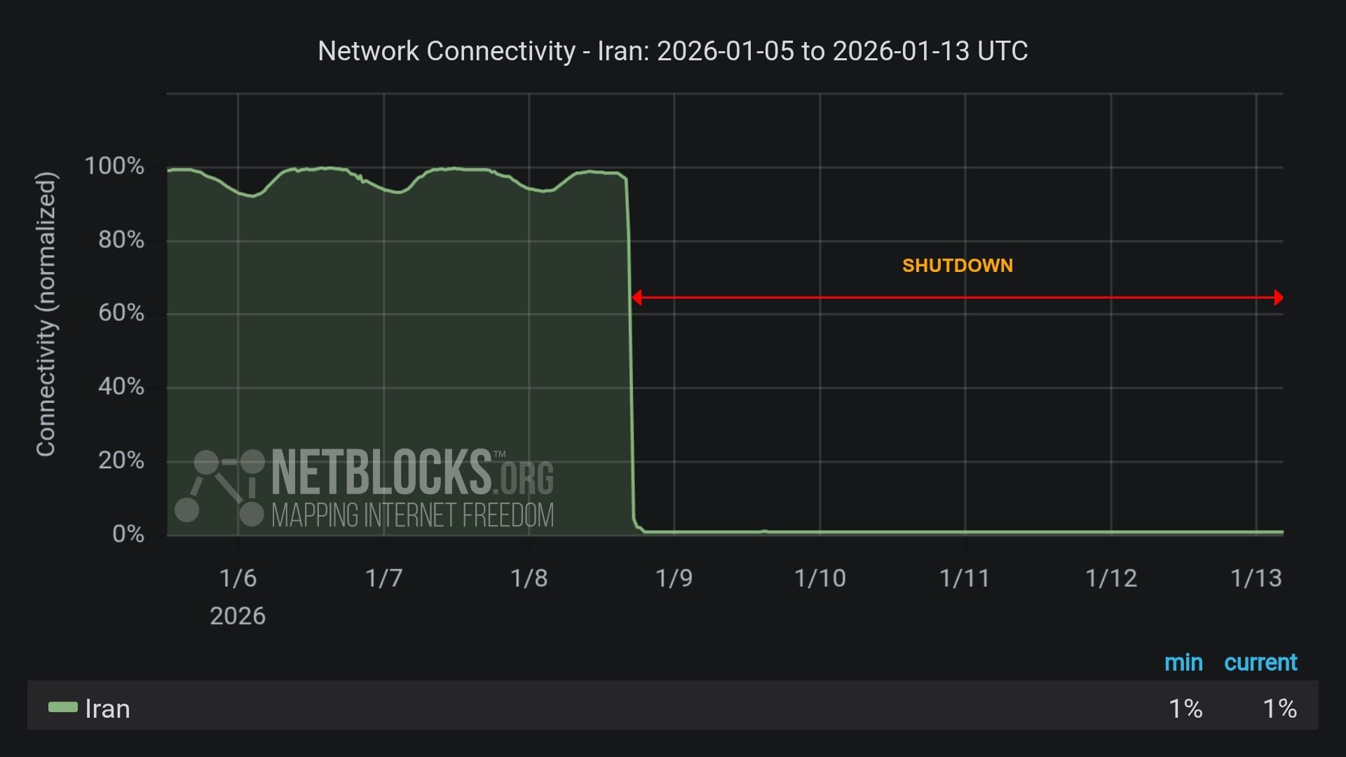 İnternet Gözlemevi Netblocks'a göre İran'ın internete erişimi 108 saattir kapalı