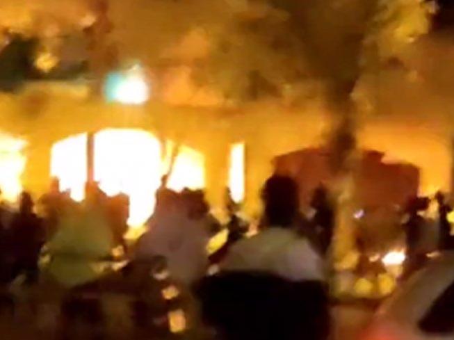 Sosyal medyada, Ayetullah Humeyni'nin Humeyn kentindeki müzeye çevrilen baba evine benzeyen bir binaya bazı kişiler tarafından molotof kokteyli atıldığını gösteren görüntüler paylaşıldı.