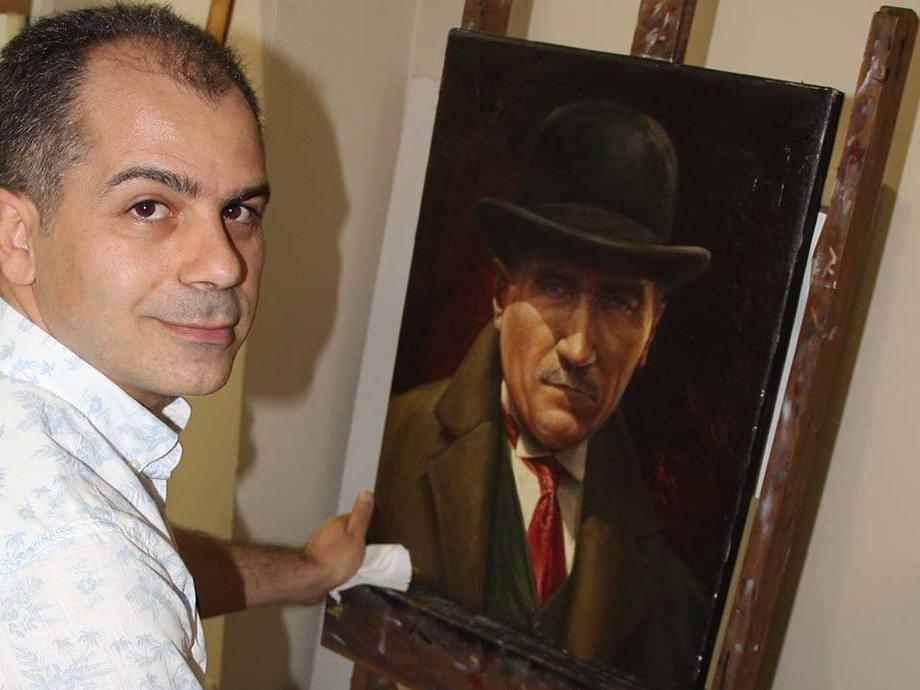 İlk geldiğimde Cağaloğlu’nda ucuz bir otelde kaldım. Hemen bir galeride iş buldum. Hocamız bize iz bırakan her şeyle resim yapılır demişti. Ama çoğunlukla portre ve yağlı boya resim yapıyorum. Sonrasında tarihi konular çok ilgimi çekti. 2000 yılında, Türk Dünyası Araştırmaları Vakfı’nda iki arkadaşla bir Atatürk büstü yapıyorduk. O zaman dikkatimi çekti. Atatürk’ün yüz anatomisi döneme göre değişmiş. 32 yaşındaki fotoğraflara bakıyorum, anatomisi çok farklılaşıyor. Yüz kaslarında 32 ile 50 yaş arasında çok büyük fark var. Çok yorulmuş, gece az uyuduğu için göz etrafı şişiyor. O büst bana çok iyi bir tecrübe oldu. Atatürk’ün hayatını araştırmadan bu büstü yapamayacağım deyip okumaya başladım. Büst bittikten sonra da araştırmaya devam ettim.