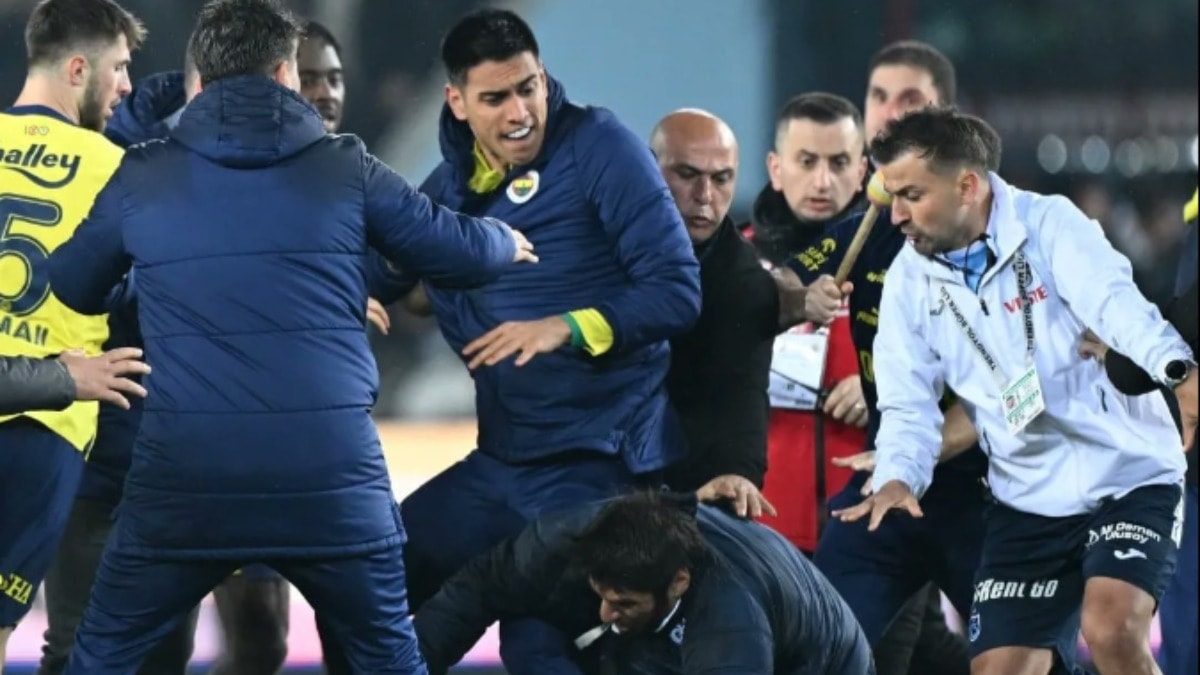 Süper Lig'in 30. haftasında oynanan Trabzonspor-Fenerbahçe maçı büyük olaylara sahne oldu. Sarı lacivertli oyuncuların galibiyet sonrası saha ortasında yaptığı sevinç üzerine oyun alanına giren bazı taraftarlarların gerçekleştirdiği saldırı sonrası ortalık karıştı.
