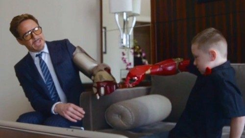 Iron Man filminde başrol karakterini canlandıran Amerikalı oyuncu Robert Downey Jr., doğuştan kolu olmayan 7 yaşındaki bir çocuğa büyük bir sürpriz yaparak Iron Man'dekine benzer bir kol hediye etti.