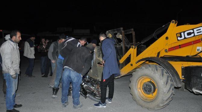 İş makinasına çarpan motosiklet sürücüsü yaralandı