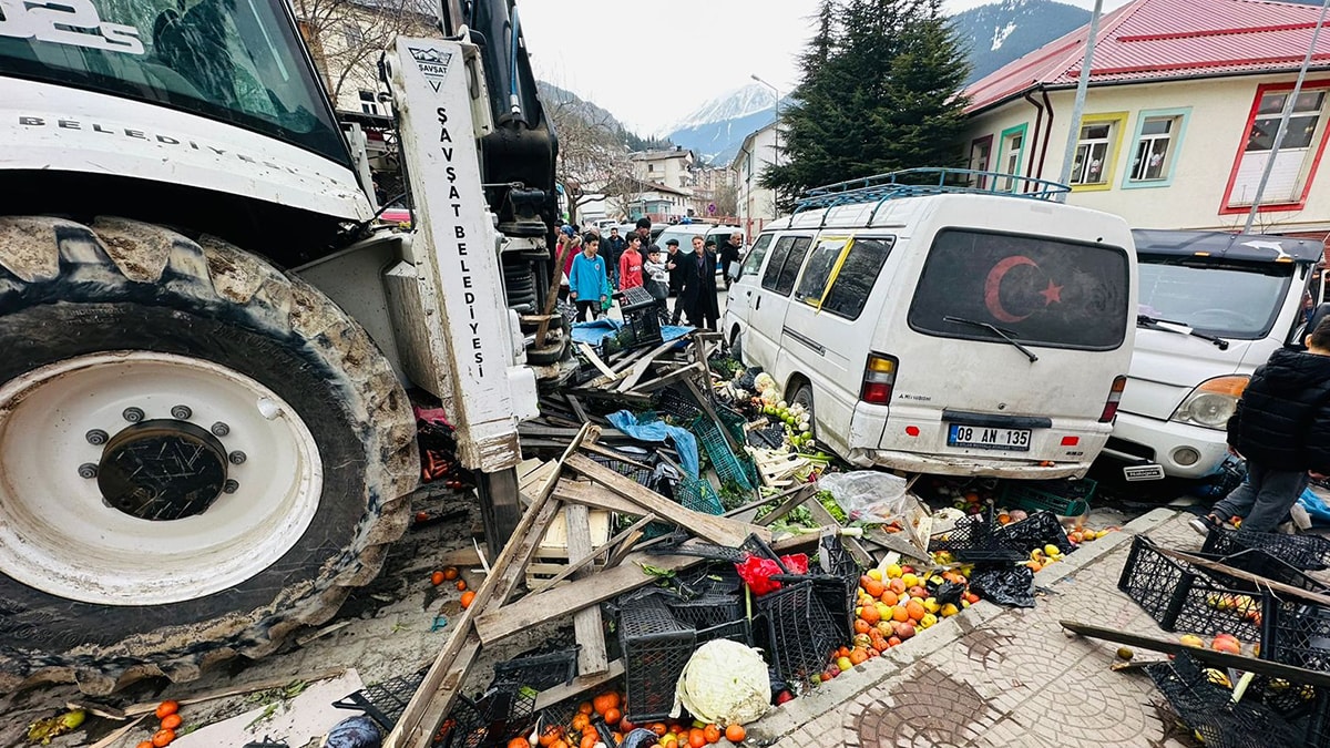 Kaza, öğle saatlerinde Şavşat ilçesi Kazım Karabekir Caddesi’nde meydana geldi. Park halindeki ilçe belediyesine ait iş makinesi, aniden geri kaymaya başladı. Hızla ilerleyen iş makinesi, cadde üzerinde kurulu pazara girdi.