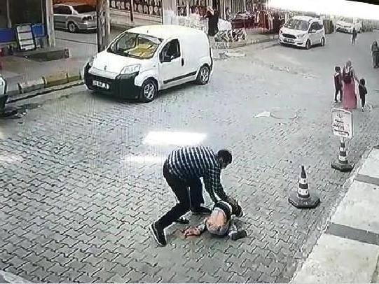 Bu duruma sinirlenen Mahmut A., sokak ortasında çocuğu tekme tokat dövdü. İş yerinin güvenlik kamerasına yansıyan görüntülere göre, Mahmut A. dövdüğü çocuğu daha sonra kaldırıp yere çarptı.