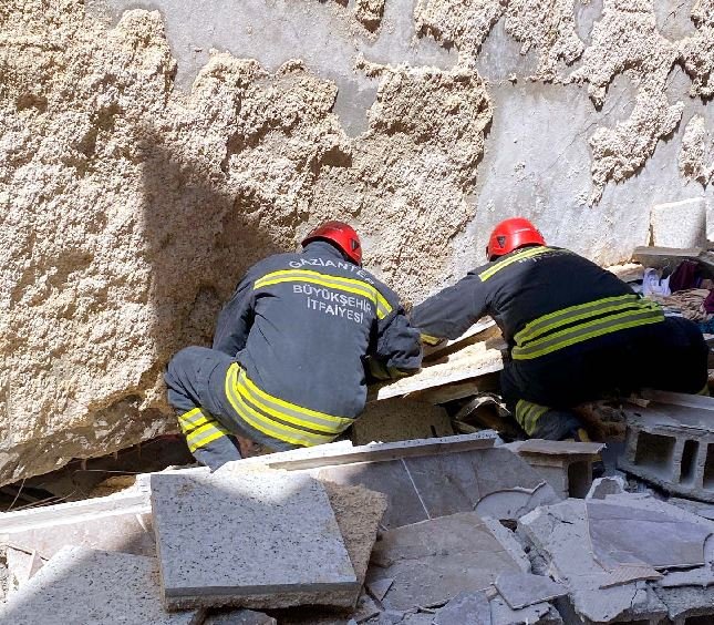 Gaziantep'te 2 katlı binanın altındaki iş yerinin duvarı çöktü. Duvarın altında kalan 4 kişi, yaralandı.