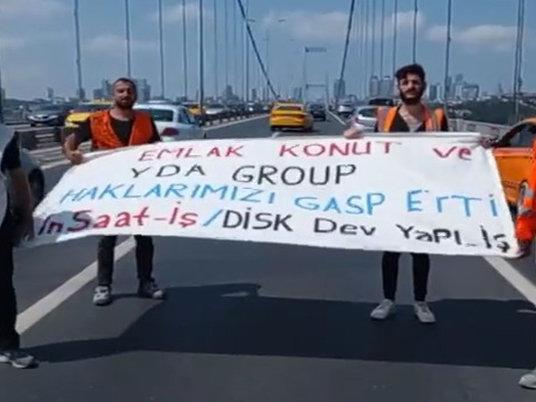 15 Temmuz Şehitler Köprüsü’ne gelen işçiler  köprüde “Emlak Konut ve YDA Group haklarımızı gasp etti” yazılı pankart açarak yolu trafiğe kapattı. Gasp edilen haklarını geri isteyen işçiler, “Emlak Konut, YDA haklarımızı gasp etti. Biz yasal haklarımızdan vazgeçmiyoruz. Tüm haklarımızı alıncaya kadar direneceğiz. Emlak Konut, YDA şunu iyi bilsin, istediğiniz kadar yasaklayın, istediğiniz kadar paralarımızı ödemeyin, istediğiniz kadar yasaklayın. Haklarımızdan vazgeçmeyeceğiz. ” dedi.