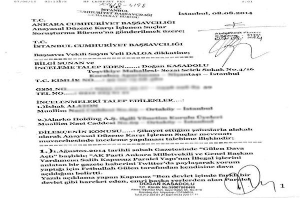 Ankara Cumhuriyet Başsavcılığı, Üzeyir Garih’in eski İthalat Koordinatörü Doğan Kasadolu’nun suç duyurusu üzerine ünlü işadamı İshak Alaton hakkında “Paralel Devlet Yapılanmasına” maddi ve manevi destek sağlamak suçlamasıyla inceleme başlattı.