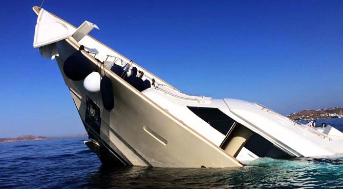 Ege'de Yunan adası Mikonos'da ünlü işadamı İshak Cerit'e ait lüks yat battı. İngiliz bayraklı 35 metrelik ’Forme’ isimli yatın demirli olduğu koyda henüz belirlenemeyen bir sebep yüzünden battığı öğrenildi.