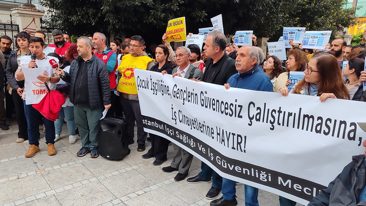 “Çocuk işçiliğine, gençlerin güvencesiz çalıştırılmasına, iş cinayetlerine hayır” yazılı pankart açılan eylemde, “Güvenceli gelecek istiyoruz”, “Çocuk işçilik yasaklansın” ve “MESEM’de vahşete, sömürüye son” sloganları atıldı. Eğitim-Sen, İstanbul Tabip Odası ve Depo, Liman, Tersane ve Deniz İşçileri Sendikası temsilcileri ile Emek Partisi (EMEP) İstanbul Milletvekili İskender Bayhan’ın konuşmalarının ardından ortak açıklama okundu. Metal işçisi Nimet Erben, şunları söyledi: