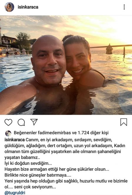 Ünlü şarkıcı Işın Karaca, yaklaşık üç yıl önce evlendiği Tuğrul Odabaş'ın doğum gününü Instagram hesabından, duygusal bir mesajla kutladı. Karaca "Canım, en iyi arkadaşım, sırdaşım, sevdiğim" diye başlayan mesajında eşine olan sevgisini dile getirdi.