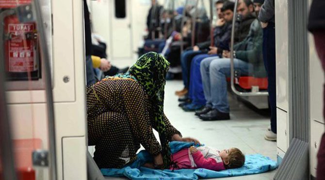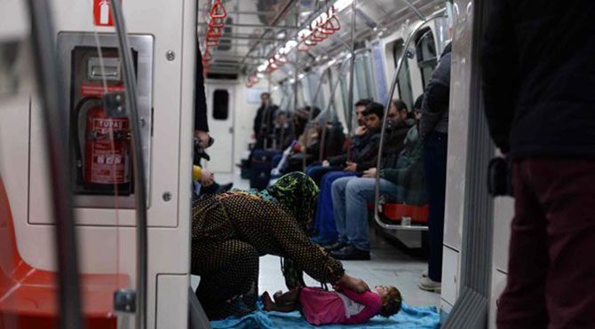 Yenikapı-Hacıosman durakları arasında metroya binen ve içerideki sıcaktan yararlanan bir aile, seferler sırasında hiçbir durakta inmedi ve adeta metroya sığındı. Metro yolcularının dikkatini çeken Suriyeli anne, sıcak ortamda bebeği ile ilgilendi.