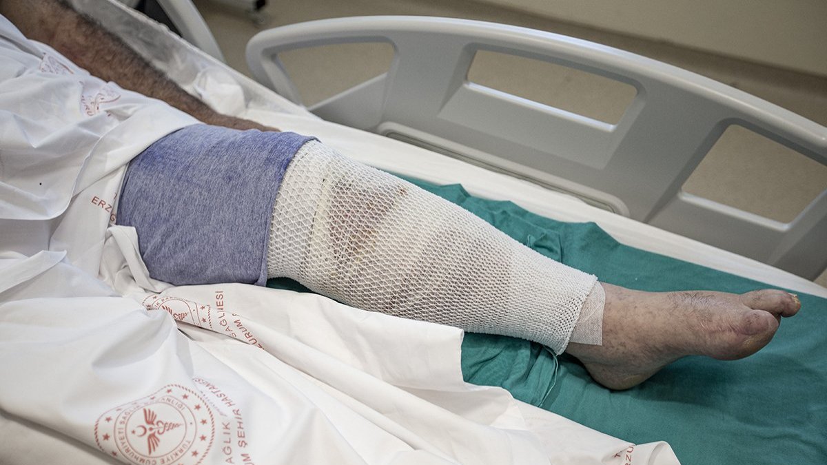Uzun, bunun üzerine sargıyı açınca iki bacağında da şişlik ve derin yanıklar oluştuğunu gördü.