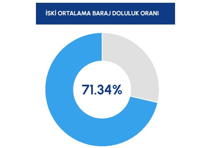 İstanbul Su ve Kanalizasyon İdaresi’nin (İSKİ) verilerine göre, megakentte barajların ortalama doluluk oranı 22 Şubat'ta 70.79 iken bugünkü verilere göre yüzde 71.34 oldu.