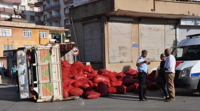 Kaza, öğle saatlerinde Hatay Bulvarı'nda meydana geldi. 49 yaşındaki Hasan Öztürk, biber çuvallarını fabrikaya taşıdığı yönetimindeki 65 HC 450 plakalı kamyonun kontrolünü yitirince araç, virajda devrildi. Kasasındaki biber çuvallarının yola savrulduğu kazada, sürücü Hasan Öztürk ile aynı araçta bulunan Mustafa Öztürk yaralandı. Yaralılar, kazayı görenlerin ihbarı üzerine sek eilen ambulansla İslahiye Devlet Hastanesi’ne götürülerek tedaviye alındı. Kaza sırasında yola savrulan biber çuvalları da görevliler tarafından yoldan toplandı.