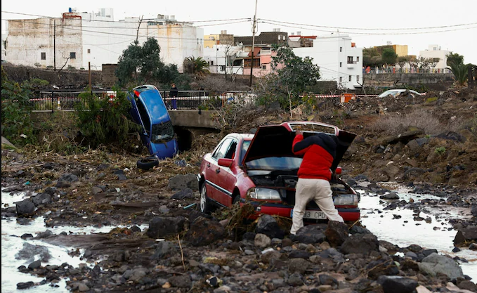 İspanya'nın dünyaca ünlü tatil merkezi Kanarya Adaları’nda aşırı yağış sebebiyle sokaklar nehre döndü, arabalar akıntıda sürüklenip gitti. İspanya bir kere daha sele teslim oldu.