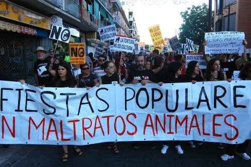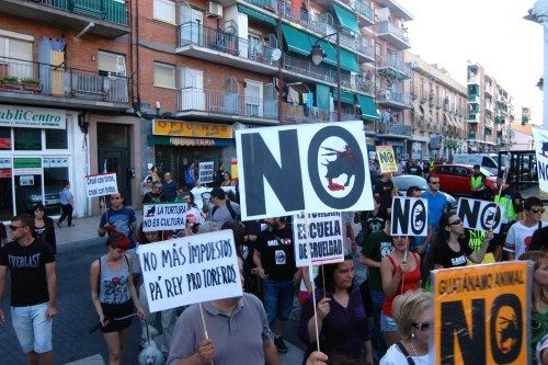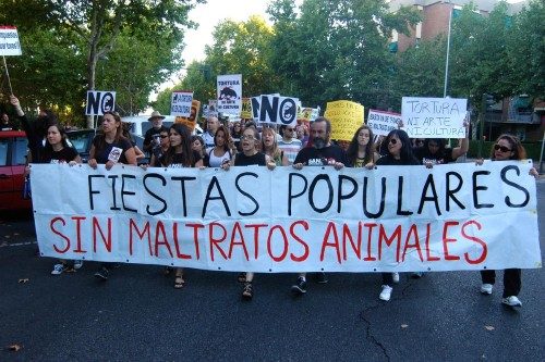 "Boğaya şiddet herkese şiddettir", "Hayvanlara işkenceye hayır", "İşkence kültür değildir" yazılı dövizler taşıyan göstericiler, boğa güreşleri ve boğalarla ilgili yapılan festivallerin kaldırılmasını istedi. Yaklaşık 2 saat süren yürüyüş olaysız sona erdi.