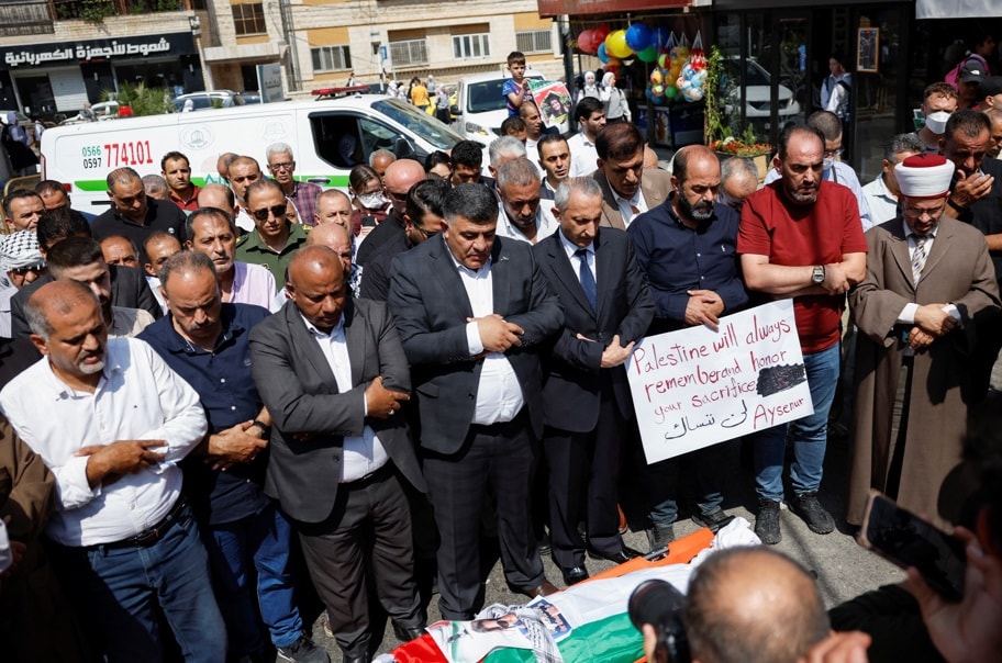 İşgal altındaki Batı Şeria'nın Beyta beldesinde İsrail askerlerince öldürülen Türk aktivist Ayşenur Ezgi Eygi için Filistin'in Nablus kentinde resmi ve sivil katılımla cenaze töreni düzenlendi.