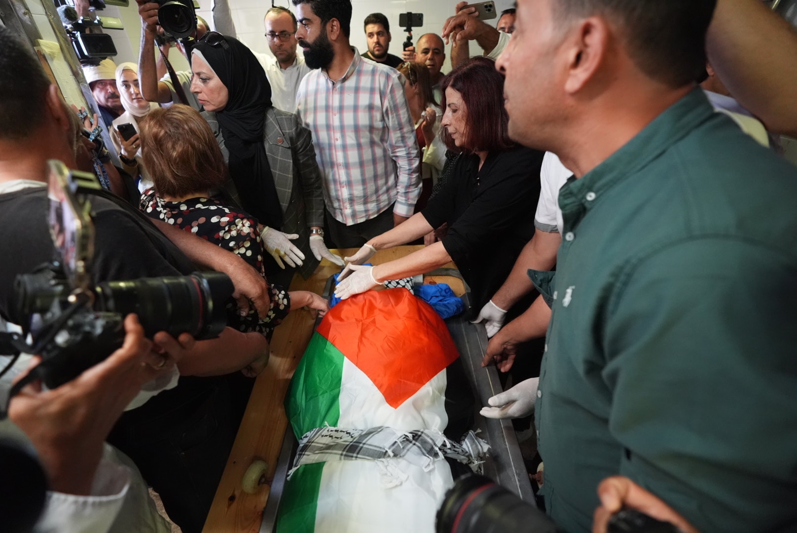 Eygi'nin naaşı, uluslararası dayanışma aktivistleri, Filistinliler, Türkiye'nin Kudüs Başkonsolosu Büyükelçi İsmail Çobanoğlu, Nablus Valisi Gassan Daglas ve sivil toplum temsilcilerinin katılımıyla Nablus kentindeki Rafidiye Hastanesi'nden alındı. Eygi'nin naaşı hastaneden omuzlarda çıkartıldı.