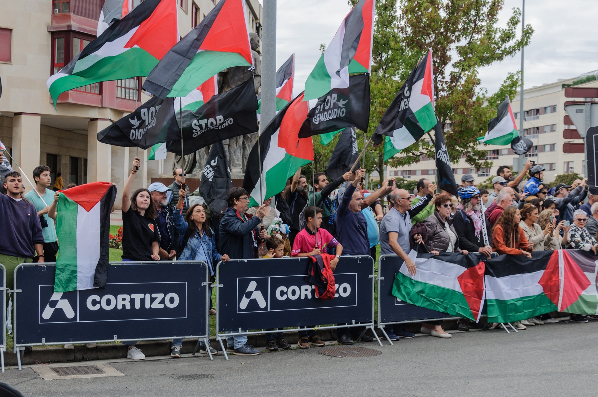 La Vuelta'da bugün 11. etabın yapıldığı Bask bölgesi, neredeyse baştan sona Filistin'e destek veren ve İsrail'i protesto eden gösterilerle geçti.