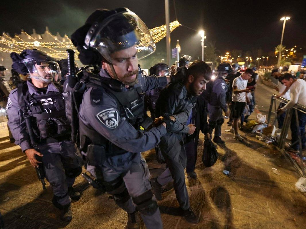 İsrail güçleri, Filistinlileri dağıtmak için plastik mermi, göz yaşartıcı gaz ve ses bombası kullanmış, Filistinliler ise güvenlik güçlerine taş, şişe ve havai fişeklerle karşılık vermişti.