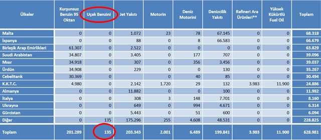 EPDK'nın yayınladığı Petrol Sektörü Nisan ayı Raporu içinde ve şemalarında İsrail'le yapılan ithalat ve ihracatın devletin resmi evraklarında oynanarak gözden kaçırıldığını ifade eden MHP'li Özcan Yeniçeri, yine Nisan 2014 dönemi rafineri üretimi kaleminde havacılık yakıtları ve jet yakıtı ayrı kalemler olarak ortaya konulması ve ihraç ettiğimiz yüzde 33'ü jet yakıtının ocak-nisan 2013- ocak-nisan 2014 dönemi (175 bin ton) "Diğer ve Çeşitli Kalemler" adı altında gösterilmesinin nedenlerini Bakan Yıldız'a sordu.