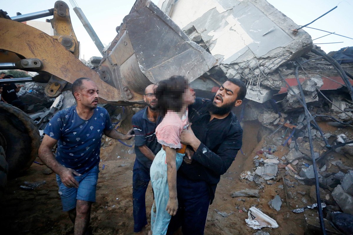 Gazze’ye saldırılarda en büyük zararı çocuklar görüyor. Ağır yaralanan bir kız çocuğunu hastaneye zor yetiştirildi.Son günlerde sosyal medyada yer alan videolarda beyaz fosforlu mühimmatın kuvvetli patlayıcı top mermileriyle birlikte kullandığı görülüyor. Top mermilerinin havada patlarken yoğun beyaz duman çıkaran parçacıklar saldığı, bunun M825 ve M825A1 topçu mermilerinin kullanımıyla tutarlı olduğu aktarıldı. (AA)