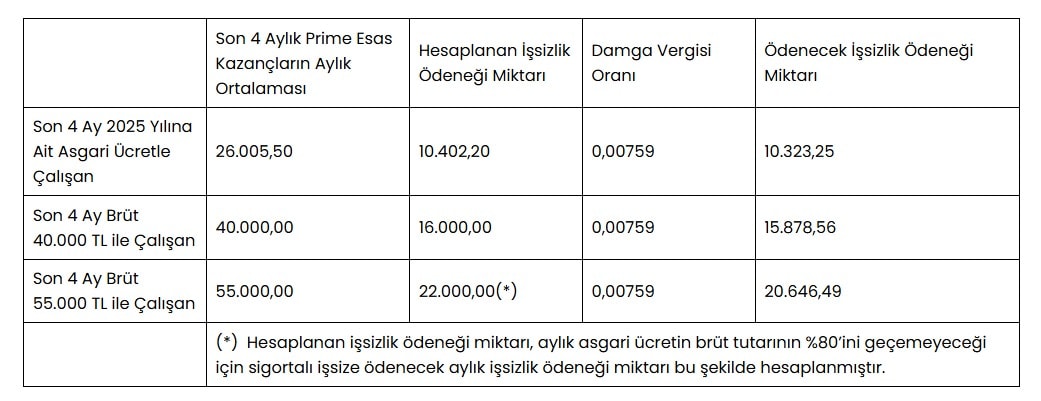 2025 yılı için aylık işsizlik ödeneği hesabı