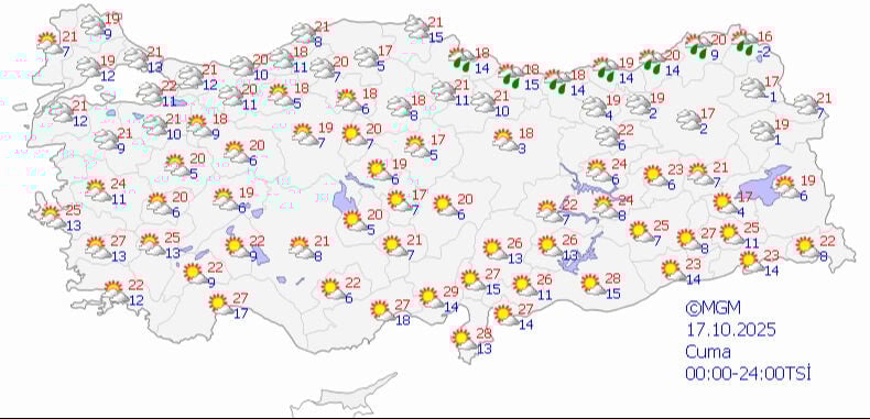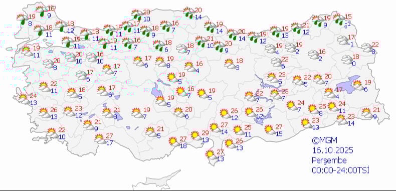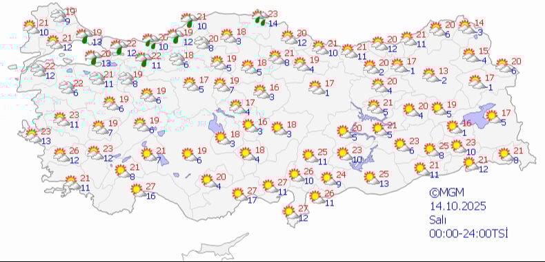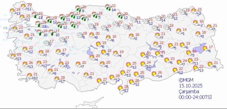 İstanbul, Kocaeli, Sakarya, Zonguldak ve Bartın çevrelerinde yerel olarak kuvvetli sağanaklar bekleniyor. Diğer bölgelerde ise az bulutlu ve açık hava hakim olacak.