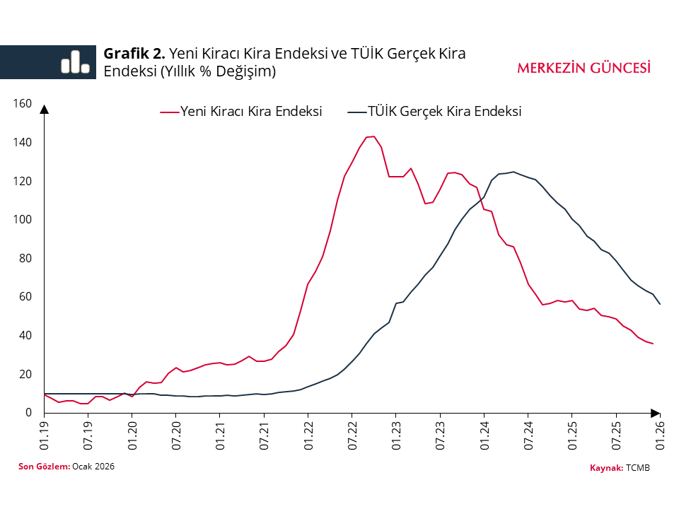 Haberde yer alan bilgilere göre, TÜİK tarafından açıklanan "Gerçek Kira Endeksi", mevcut kiracıların kontrat yenilemelerini ve %25 zam sınırı gibi geçmiş uygulamaları da kapsadığı için piyasadaki güncel fiyat değişimlerini gecikmeli yansıtıyor. TCMB’nin banka değerleme raporlarından yola çıkarak hazırladığı Yeni Kiracı Kira Endeksi (YKKE) ise, bir konutun o anki piyasa şartlarında hangi bedelle kiraya verilebileceğini ölçüyor.